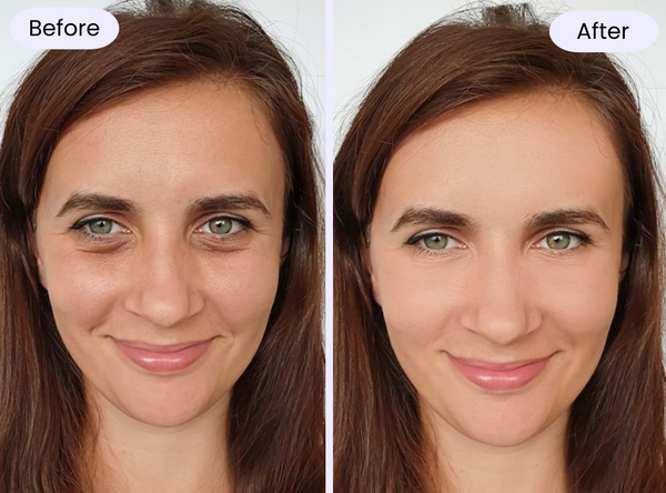 Most people notice reduced puffiness within minutes and brighter under-eyes in 2–3 weeks. Fine lines and firmness improve with consistent daily use.